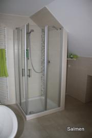 - Bad: Dusche mit Echtglas-Duschkabine,