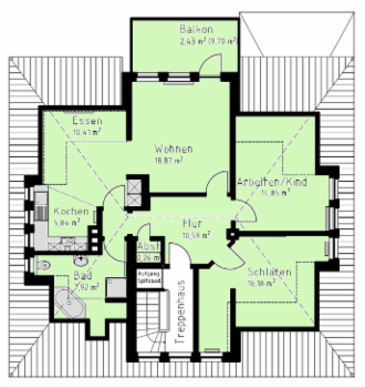 Zu dieser Wohnung gehören folgenden (hier grün dargestellten) Räume:
